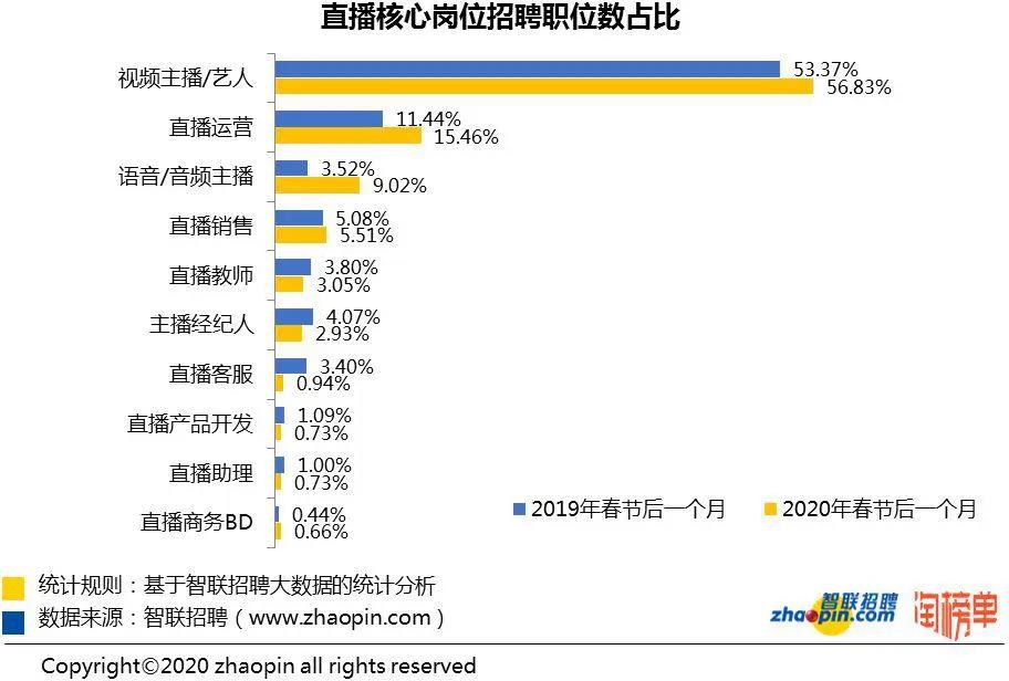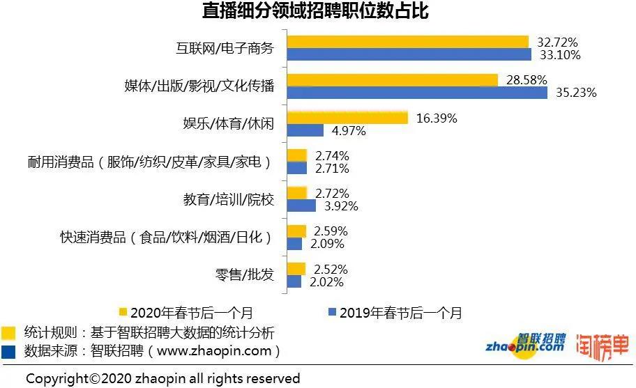 近日,智聯招聘攜手淘榜單共同發(fā)布的《2020 年春季直播產業(yè)人才報告》顯示,