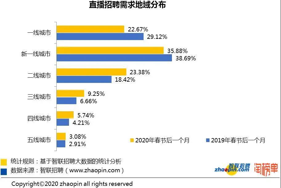 直播人才需求逐步城市下沉